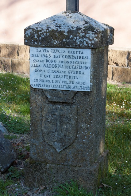 Furono costruite nell’anno 1945 dai Padri Carmelitani Scalzi del Convento di San Silvestro e furono realizzate con la pietra sperone, materiale vulcanico che si estraeva sul vicino Monte Salomone. Le edicole furono completate da quattordici immagini in ceramica di Vietri raffiguranti la passione di Cristo secondo il canone della iconografia sacra. Le opere furono realizzate con un concorso economico grazie ad una sottoscrizione dei cittadini. La Via Crucis è posta all’esterno di un edificio sacro, forse proprio per volerla inserire nel tessuto urbano della cittadina. Questa scelta, purtroppo, ha esposto le 14 edicole ai danni causati degli agenti atmosferici e alle azioni vandaliche (uno fra tutti quello che portò alla rottura di numerose piastrelle e la perdita di frammenti originali.