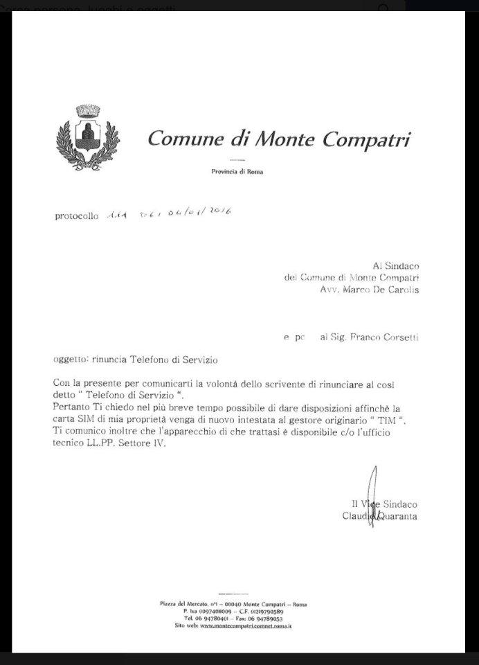 Il sindaco afferma in seguito che “i pagamenti di assessori e consiglieri non sono dei rimborsi ma anticipi”. Lupus in fabula: proprio quanto asserito dal Sindaco dimostra che è il Comune di Monte Compatri ad acquistare i telefoni per la cerchia politica di centro destra. Ci sorge un’ulteriore domanda: se i 21 smartphones vengono forniti per motivi di servizio, perché i relativi numeri non compaiono nella lista dei contatti comunali reperibili che quotidianamente vengono postati sul profilo Facebook comunale di Monte Compatri?