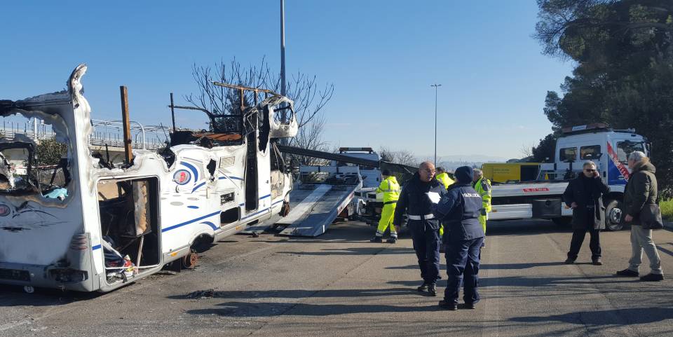 Rimosso il camper che, da tempo, era stato abbandonato al capolinea della Metro C. Questa mattina, tecnici di Atac, una ditta specializzata e gli agenti della polizia locale di Monte Compatri hanno provveduto a rimuovere quel che restava di un mezzo distrutto dalle fiamme.