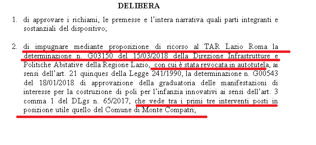 “Non aver la Commissione operato nella sua piena composizione e … comunque l’attività istruttoria svolta dalla stessa non risulta in alcuni casi sufficientemente approfondita”: con questa formula la direzione Infrastrutture e Politiche abitative della Regione Lazio, con determinazione numero G03150 del 15 marzo 2018, ha revocato la determina che assegnava 5milioni di euro al Comune di Monte Compatri per la realizzazione dei plessi di infanzia e nido nel nuovo plesso scolastico.
