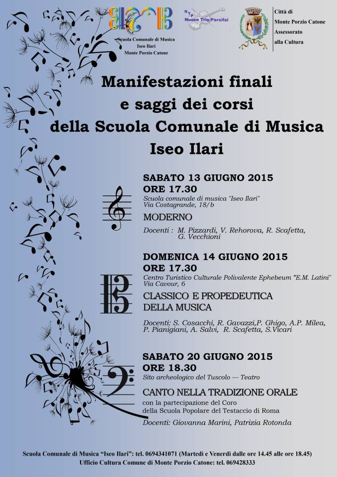Per la Scuola Comunale di Musica “Iseo Ilari”, diretta dal M˚ Paola Ghigo, è arrivato il momento conclusivo dell’anno, la didattica si è conclusa e i saggi coroneranno un anno di lavoro. Tre gli appuntamenti da sabato 13 a mercoledì 20 giugno, come riportato nel programma in calce.