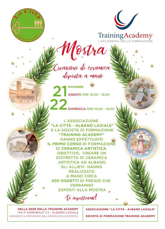 L’Associazione culturale “La Città – Albano Laziale” e la società di formazione “Training Academy” hanno effettuato il primo corso di formazione di ceramica artistica. Obiettivo, creare un distretto di ceramica artistica ad Albano. Il corso era gratuito. Sabato 21 dicembre si terrà la mostra nella quale verranno esposti tutti gli oggetti in ceramica che sono stati realizzati a mano dai 20 allievi che hanno frequentato il corso di circa tre mesi. Verranno esposti circa 200 oggetti di elevata qualità (piatti, piastrelle ed oggettistica varia., tutti decorati a mano), molti dei quali raffiguranti i monumenti storici di Albano. Nella cerimonia verranno consegnati agli allievi gli attestati di partecipazione al corso. Il corso è stato tenuto dalla maestra ceramista Mariana Matrìa, artista che ha studiato arti visuali in Argentina e che si è formata in Italia, a Salerno, sulla ceramica impiegando la tecnica tipica di Vietri sul mare. L’iniziativa è stata intrapresa dall’Associazione culturale “La Città – Albano Laziale”, ed il corso è stato svolto dalla società Training Academy, la quale ha creduto nel progetto e lo ha finanziato, nell’ambito dei suoi progetti gratuiti, a fine sociale, definito “formiamo il prossimo”. L’associazione La Città – Albano Laziale, nata circa un anno fa, ha studiato e predisposto progetti per la qualificazione e la crescita economica e sociale di Albano. Le idee progettuali fondano sulla necessità di dare vita a strumenti concreti per supportare le attività economiche e commerciali della nostra cittadina le quali, queste ultime, hanno risentito negli ultimi anni della soverchiante competitività imposta dalla grande distribuzione presente nei comuni circostanti. Secondo le valutazioni de “La Città”, occorre creare ad Albano strutture ed attrazioni innovative per attrarre turismo di qualità, quale volàno per la crescita delle attività economiche del luogo e per creare nuova occupazione. L’Associazione, nata appunto un anno fa, ha ritenuto di impegnarsi in modo fattivo per individuare e realizzare progetti mirati per la qualificazione economica e di immagine di Albano. A questo scopo, ha ritenuto di organizzare con i propri associati una lista civica con la quale parteciperà alle prossime elezioni amministrative di Albano del 2020. Ha ritenuto necessario questo passaggio allo scopo di intervenire direttamente, dall’interno dell’Amministrazione comunale, per l’attuazione dei progetti che sono stati ideati per Albano. Fra i punti significativi del piano di sviluppo predisposto dall’Associazione si colloca la creazione di un quartiere dell’artigianato di prodotti artistici che, secondo lo schema progettato, dovrà essere realizzato in Piazza della Rotonda, una delle piazze storiche della città. Quì dovrà essere realizzata dal comune una struttura architettonica attraente ed ospitale, in isola pedonale, per aprirvi negozi stabili di artigiani, formati dal comune con corsi di formazione specifici (il primo corso lo abbiamo svolto noi dell’Associazione, a dimostrazione della concretezza del progetto). Sarà un primo quartiere/salotto dove i tre milioni di romani (e non solo) potranno recarsi per foto ricordo e per acquisti. A questo, dovranno seguire altri quartieri/salotto, ognuno con attrazioni o interessi diversi tra loro. Si otterrà così una città ospitale, rivitalizzata da rinnovato arredo urbano di qualità. A dimostrazione della concreta possibilità di realizzare questo ambiente ospitale, e popolato da artisti artigiani, l’Associazione “La Città” ha appunto organizzato questo primo corso di formazione in ceramica artistica, dal quale si sono già ottenuti risultati tangibili in termini di costruzione di nuovi artisti artigiani e di creazione di oggetti artistici di pregio. Questi nuovi artisti locali, sono già pronti per produrre oggetti esclusivi e di qualità, e per commercializzarli nei modi che anche il Comune dovrà incentivare, nell’interesse dell’immagine del paese. L’obiettivo è creare gradualmente ad Albano, con altri corsi successivi, un vero e proprio “distretto” della ceramica artistica dei Castelli romani, affinchè Albano diventi una mèta turistica ambita da molti. Sempre al fine di richiamare un turismo stabile, e non occasionale, l’Associazione si propone di far realizzare ad Albano un hotel di qualità elevata con salone congressi ed un centro benessere in stile UNICO: si pensa alla copia esatta delle terme Cellomaio. Attrattivo per il turista italiano, ma innanzitutto straniero. Il Comune dovrà predisporre il progetto di massima ed affidarlo ad un operatore alberghiero qualificato che lo realizzi e lo gestisca. L’obiettivo è creare un turismo d’affari e di sosta tutto l’anno, offrendo la giusta “location” per convegni e congressi. Il progetto per il turismo prevede inoltre di organizzare un circuito museale integrato con quello della Curia vescovile, e di affidare le visite ad una cooperativa di guide, allo scopo di assicurare al turista una assistenza di qualità e continuativa. L’economia del territorio si accresce anche attraverso l’incentivazione delle persone a mantenere un comportamento virtuoso, basato sull’economia sostenibile. Per questo l’Associazione propone di applicare un criterio premiante a favore dei cittadini che fanno acquisti in negozi ed imprese presenti nel comune: se spendi nel comune favorisci la crescita e vieni premiato applicando una riduzione sulle imposte locali in proporzione alla quantità di acquisti che hai effettuato in ambito comunale. Il commercio di Albano ne risulterà avvantaggiato, determinando ulteriore indotto economico ed occupazionale. Quelle descritte sono le principali iniziative avviate e da realizzare nel settore dell’economia e dell’occupazione locale. La promozione economica e di immagine che si determinerà per la nostra cittadina andrà a produrre benefici indotti e maggior benes