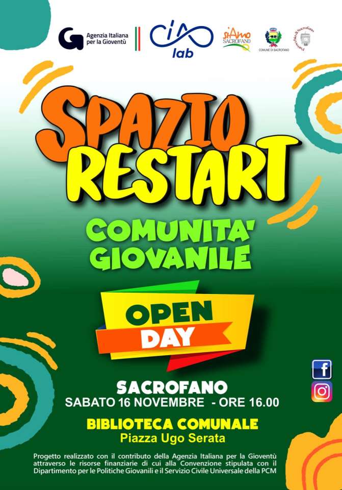 L’associazione CIAO LAB APS, in collaborazione con il Comune di Sacrofano, la Parrocchia di Sacrofano e l’associazione Siamo Sacrofano, promuovono il progetto “Spazio Restart”, al fine di creare una Comunità Giovanile sul territorio.