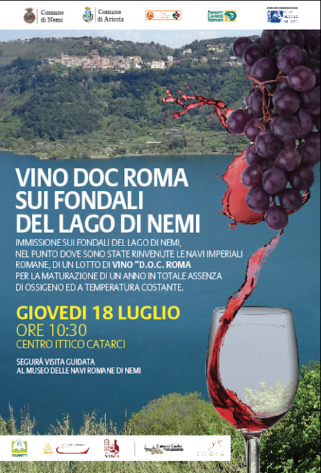 Si svolgerà Giovedì 18 Luglio alle ore 10:30 presso il Centro Ittico Catarci l’immissione sui fondali del lago di Nemi di un lotto di vino “D.O.C. Roma” per la maturazione di un anno in totale assenza di ossigeno ed a temperatura costante. Il Vino “D.O.C. Roma” è una nuova denominazione riconosciuta dalla Camera di Commercio il quale disciplinare prevede la produzione di questa tipologia di vino con i vitigni di Montepulciano e Cesanese e l’invecchiamento di due anni. Il lago di Nemi è conosciuto in tutto il mondo per aver conservato e custodito per 2000 anni le due navi imperiali di epoca romana volute dall’imperatore Caligola. Per questa sua capacità di conservazione, l’Amministrazione Comunale di Nemi in collaborazione con l’azienda agricola “Monte Due Torri”, intende procedere con questa iniziativa che unisce molti aspetti sia dal punto di vista naturalistico, ma anche storici e enogastronomici. L’iniziativa è patrocinata non solo dal Comune di Nemi ma anche da quello di Ariccia, dal Touring Club Italiano Paesi Bandiera Arancione, Parco Regionale dei Castelli Romani, Coldiretti, Camera di Commercio di Roma e Associazione Nazionale Città del Vino. Importante è la collaborazione del Polo Museale del Lazio che a seguito dell’iniziativa ha voluto organizzare una visita al Museo Nazionale delle Navi Romane di Nemi.