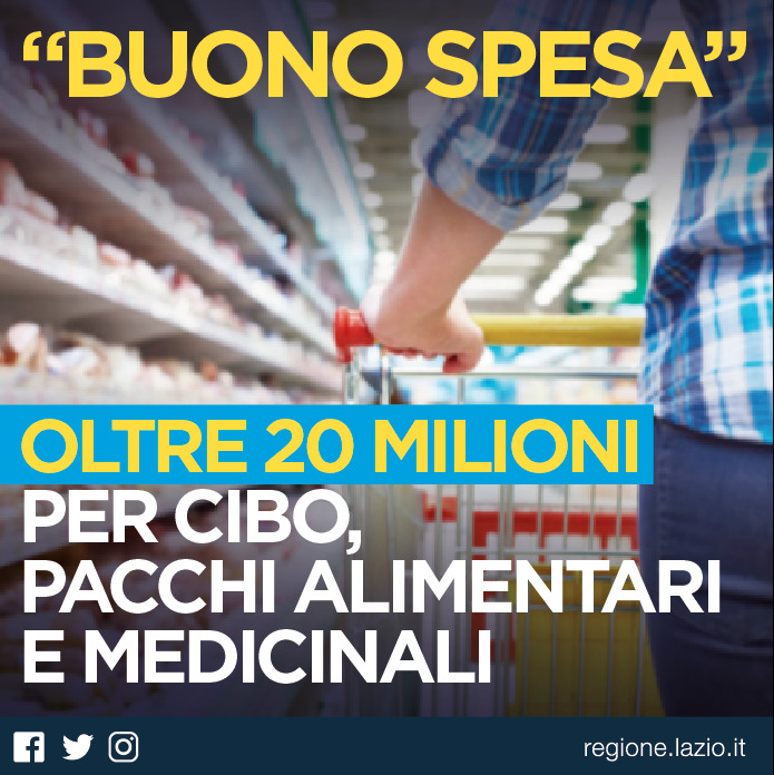 “Le risorse di “Buono spesa” – spiega l’assessore Troncarelli – sono riservate all’acquisto di cibo, alla distribuzione di pacchi alimentari, nonché alla copertura dei costi sostenuti per i medicinali. Destinatari sono le famiglie e tutte quelle persone che, con l’attuale crisi, non hanno mezzi per far fronte ai bisogni primari. In un momento tanto difficile, la Regione Lazio sta mettendo in campo una serie di azioni concrete e immediate per alleviare le difficoltà delle fasce più vulnerabili, assicurando i beni di prima necessità e dando la possibilità di acquistare anche le medicine. È prevista la possibilità di usufruire delle convenzioni con gli enti del terzo settore per la distribuzione a domicilio”.
