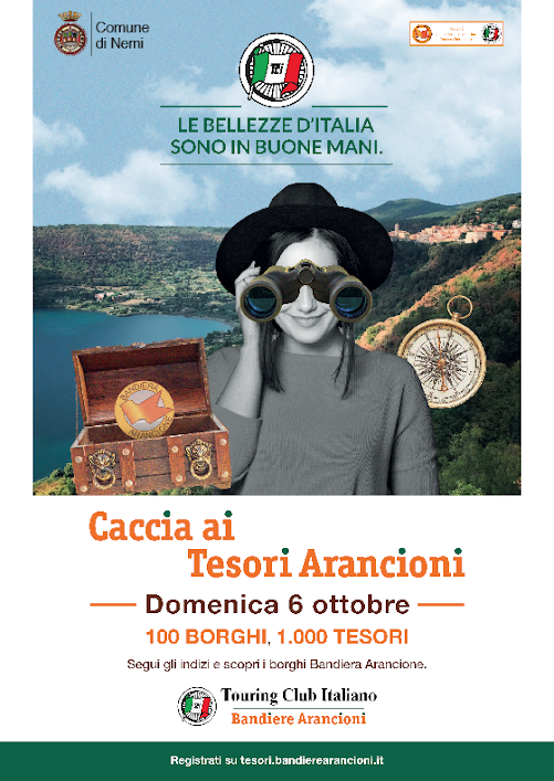 Domenica 6 ottobre il Touring Club Italiano invita a visitare anche Nemi tra le 100 piccole eccellenze dell’entroterra con la “Caccia ai Tesori Arancioni”: la più grande caccia al tesoro d’Italia per conoscere storie, persone, monumenti e piccole curiosità custodite nei luoghi meno noti. Nel Lazio è possibile partecipare anche a Nemi che offrirà quindi un percorso unico, che saprà fare emergere la più profonda e autentica identità del luogo e le sue eccellenze. Questa iniziativa non è un punto di arrivo per il Comune di Nemi, ma una partenza che mette al centro ancora una volta la bellezza e l’unicità di questo territorio. Un Comune del Lazio famoso per la sua splendida posizione geografica, la sua spettacolare vista sul lago e per la cura del suo centro storico che diventa ancora per una volta protagonista di un evento nazionale. “Siamo felici – dichiara l’assessore al turismo sindaco Edy Palazzi – che Nemi tra i tesserati del Touring Club Italiano il Comune di Nemi è stato così ambito tanto da aver esaurito le iscrizioni. Per questo l’amministrazione Comunale ha deciso in accordo con il Touring Club Italiano di accogliere ancora nuove iscrizioni oltre il limite prestabilito. Un segnale positivo per quanto riguarda la visibilità e la percezione dell’impatto turistico in crescita di questo territorio. Ovviamente, come ogni caccia al tesoro che si rispetti, un premio aspetterà tutti i partecipanti al termine del percorso, ma cosa si vince veramente? Mai come in questo caso è il viaggio il vero tesoro da raccogliere, più che la meta finale. La caccia al tesoro, o meglio ai tesori, è gratuita e aperta a tutti i curiosi che abbiano voglia di mettersi in gioco con la propria squadra e di vincere un premio, indovinando tutti gli indizi”. Per partecipare basta scegliere il borgo e iscriversi fino a domenica 6 ottobre sul sito tesori. bandierearancioni.it. I posti sono limitati.