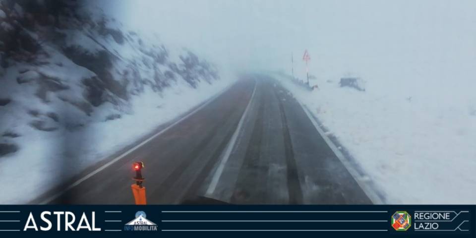 Neve sulla Sr509 di Forca d’Acero dove sono attivi mezzi spazzaneve di Astral Spa dal km 9+680 al km 11+500.