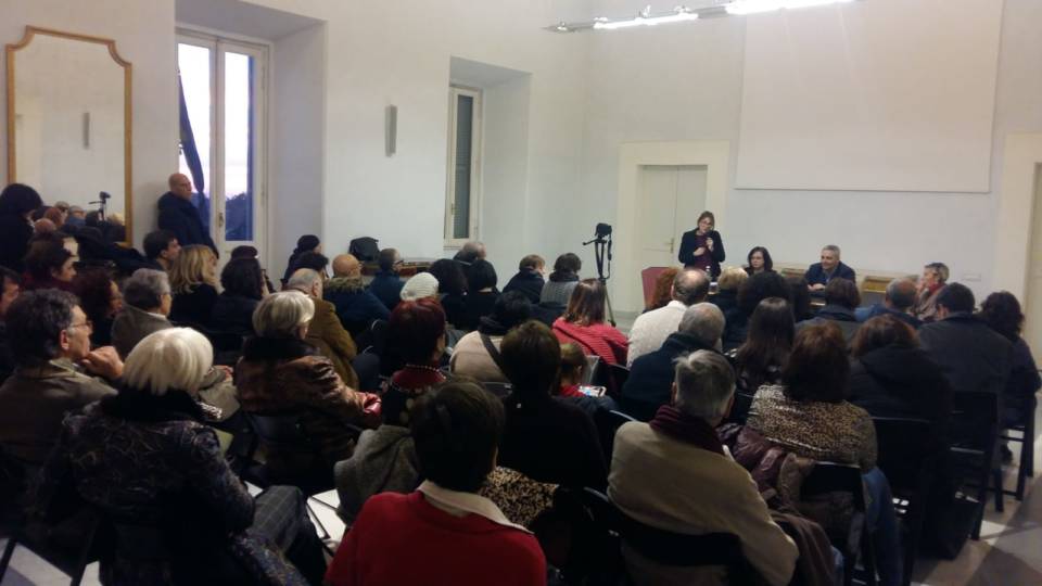 Sala gremita, solo posti in piedi. Gli appassionati non si sono lasciati sfuggire questa occasione, sancendo il definitivo successo di pubblico e di gradimento per questa Rassegna che ormai da sei anni lavora e cresce per portare la cultura del libro e del genere giallo/noir a Frascati.