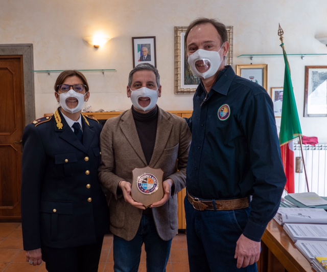 L’associazione Emergenza Sordi APS ha donato alcune mascherine trasparenti validate ISS per la lettura labiale e di vademecum per la comunicazione visiva agli agenti della Polizia Locale.