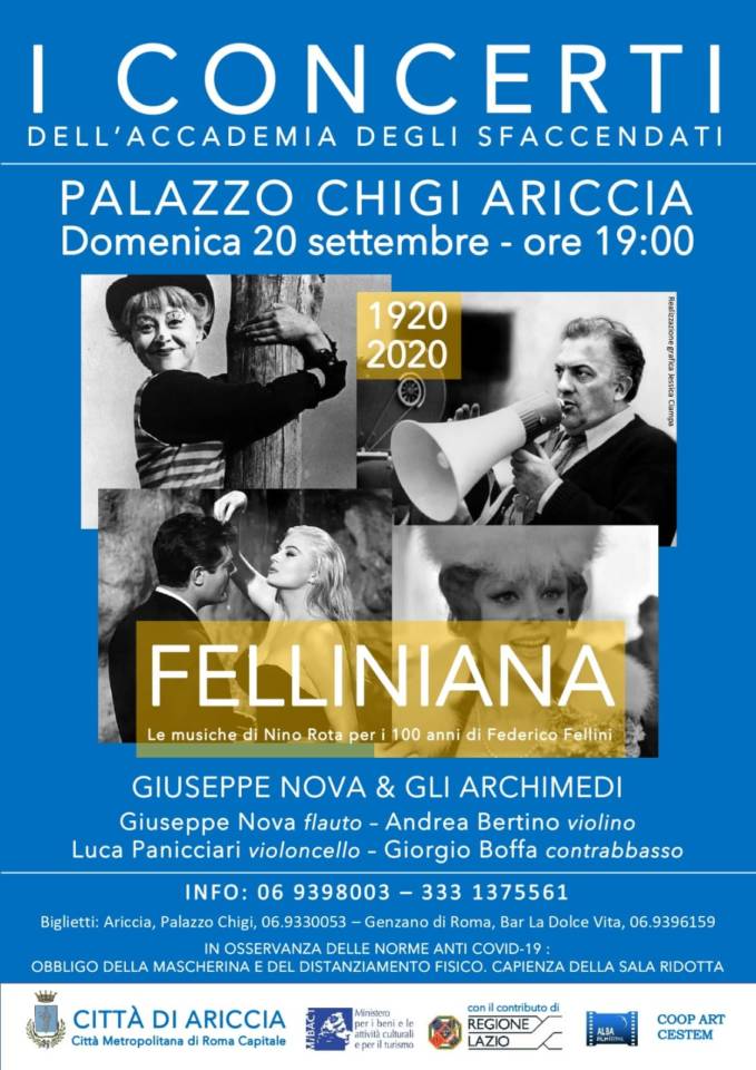 “Con un omaggio a Fellini per i suoi 100 anni, riprendono i Concerti degli “Sfaccendati” al Palazzo Chigi di Ariccia