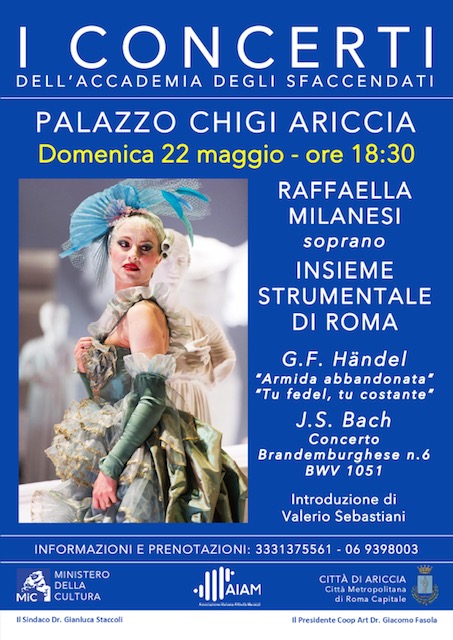 Ne saranno protagonisti l’Insieme Strumentale di Roma diretto da Giorgio Sasso, uno dei migliori ensemble italiani che alla musica barocca ha dedicato anni di esecuzioni e ricerche che hanno prodotto l’incisione di cd dedicati alla riscoperta di compositori quali Legrenzi, Durante ed altri per le etichette Brilliant Classics e Stradivarius, insieme al soprano Raffaella Milanesi, apprezzata a livello nazionale e internazionale per la sua peculiare vocalità e le sue doti interpretative.