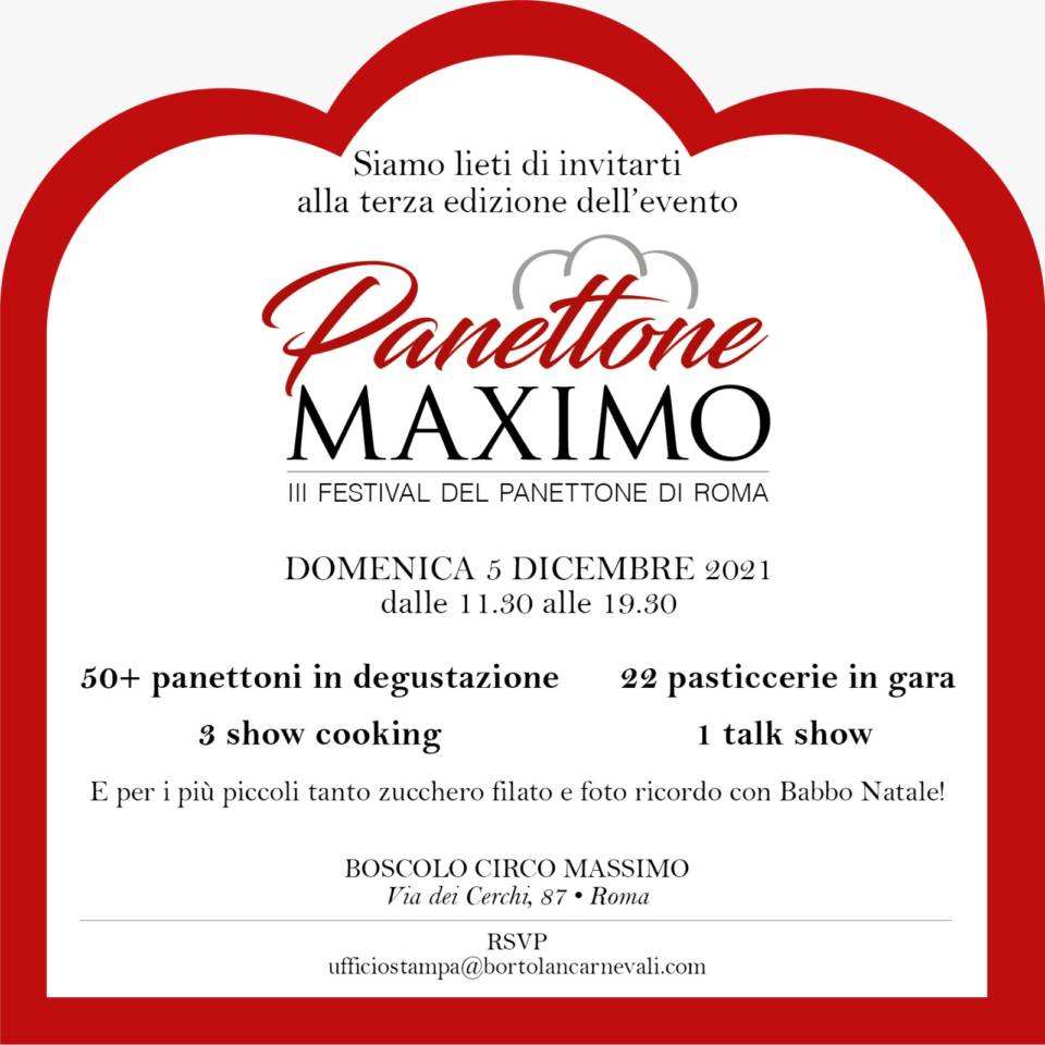 Per celebrare il panettone, straordinario prodotto artigianale che racchiude in sé tutto il calore, la ricchezza e la bontà delle Feste Natalizie, domenica 5 dicembre – dalle 11:30 alle 19:30 – al Boscolo Circo Massimo si terrà Panettone Maximo 2021 • Agrimontana, la terza edizione del Festival del Panettone di Roma e del Lazio, organizzato da RistorAgency con il supporto di Azienda Agrimontana, Molino Dallagiovanna e Caviale Giaveri.