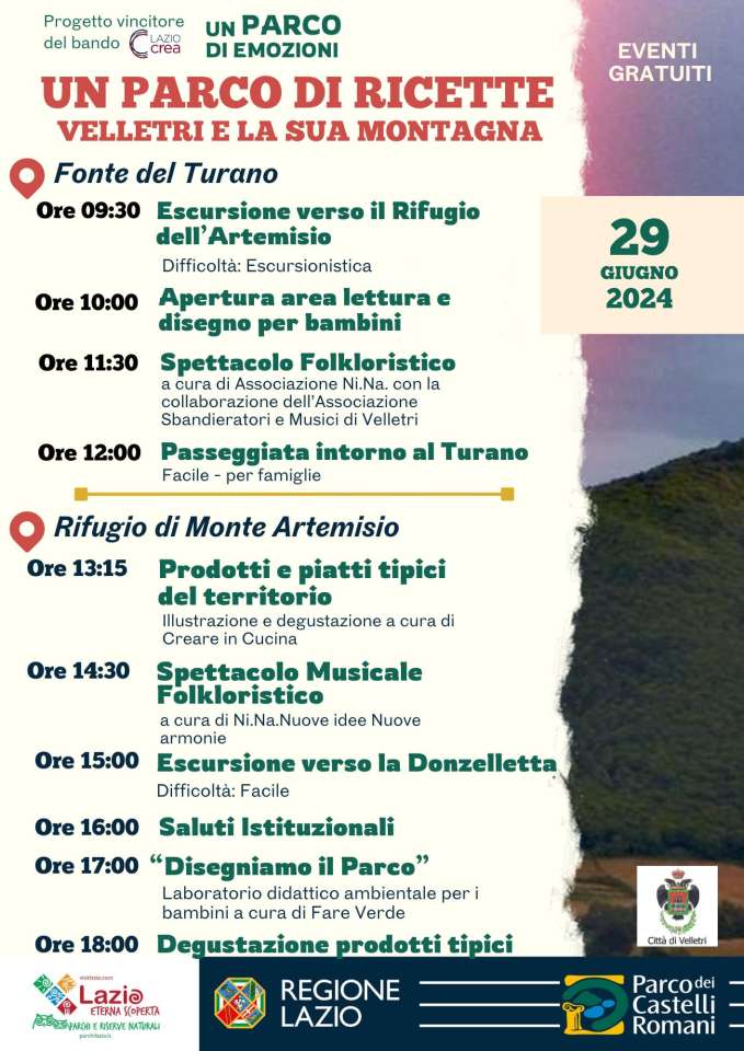 Per il ciclo di eventi legati al progetto “Un Parco di Emozioni”, sabato 29 giugno si svolgerà l’iniziativa gratuita “Un Parco di ricette. Velletri e la sua montagna”.