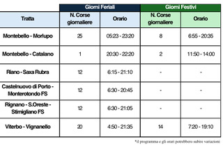 Viterbo – Vignanello: 20 corse nei giorni feriali, 14 corse nei giorni festivi