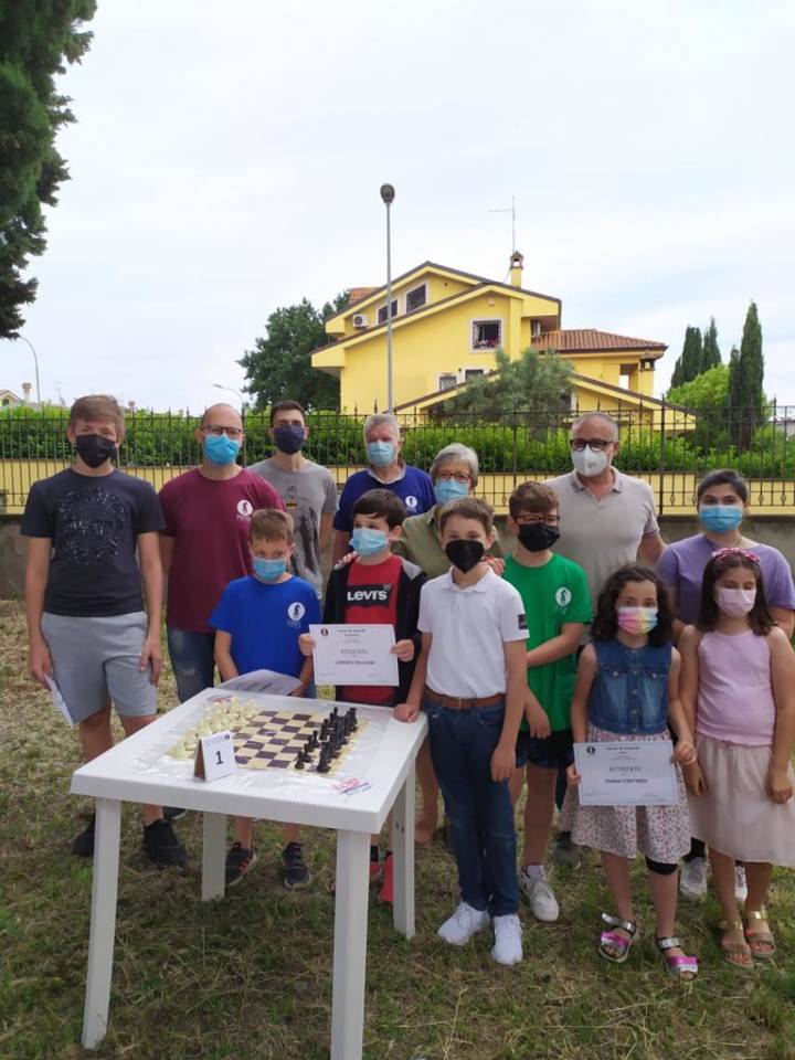 E’ tempo di ripartire anche per gli allievi della Asd Scacchi in Tour, associazione sportiva che sta diffondendo la pratica degli scacchi su tutto il territorio dei Castelli Romani, attraverso una attività divulgativa e formativa rivolta a tutti. Dopo oltre un anno di corsi online infatti, quello svoltosi nel pomeriggio di ieri, presso la cornice di Villa Contarini a Pavona, è stato il primo torneo in presenza. L’evento, patrocinato dal Comune di Albano Laziale, è stata l’occasione per consegnare a tutti i corsisti, gli attestati di partecipazione, direttamente dalle mani del Sindaco Massimiliano Borelli. Presenti anche la Consigliera Comunale Laura Faccia, nella doppia veste di mamma di una giovanissima scacchista e rappresentante istituzionale, unitamente al collega a Palazzo Savelli Marco Alteri. Il Vice Presidente di Scacchi in Tour Igor Sagratini, nel presentare l’appuntamento, ha voluto omaggiare, a nome dell’associazione, il Sindaco Borelli con una maglietta celebrativa ed Ippazio Aradeo, per la vicinanza ed il sostegno verso la società sportiva.