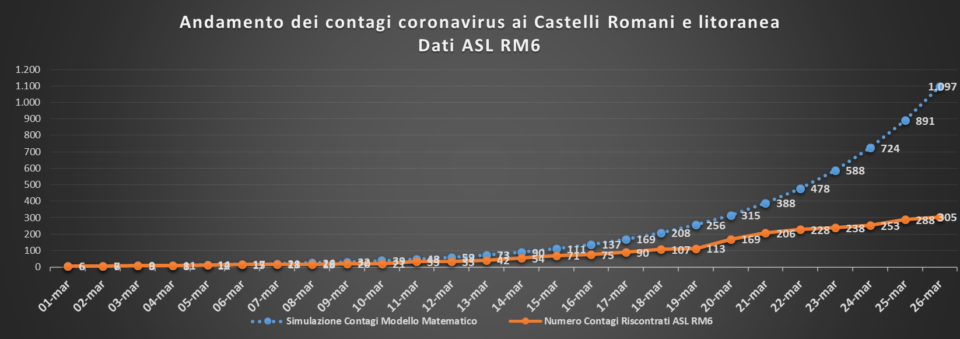 Nella ASL RM6, che comprende i Castelli Romani e la litoranea, oggi 26 marzo il numero dei contagi è salito a 305, con 17 nuovi casi in più.