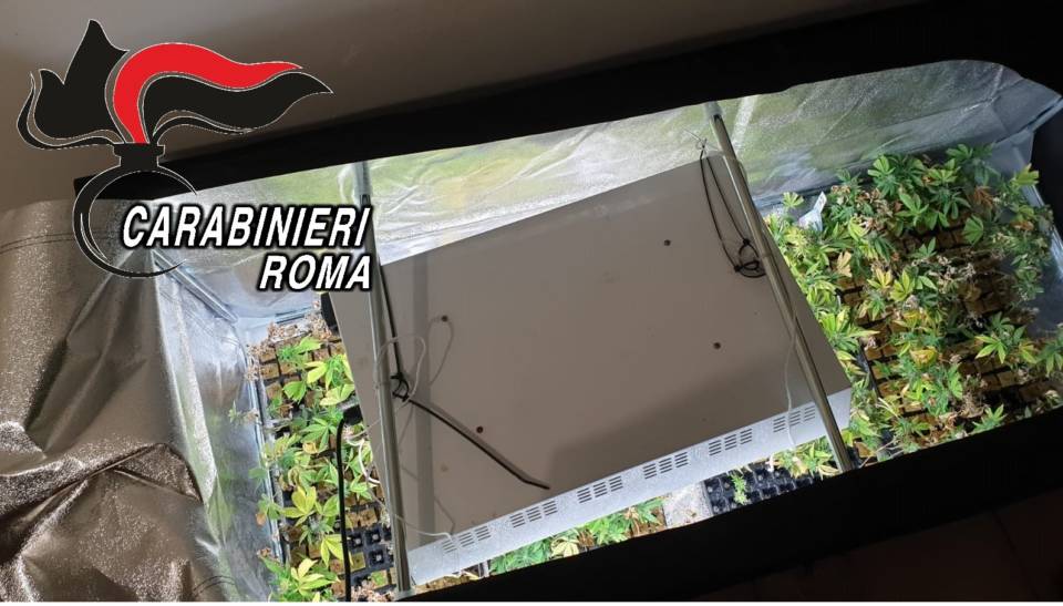I Carabinieri della Stazione di Frascati, ieri sera (giovedì 26 dicembre ndr), hanno arrestato un 32enne, titolare di un negozio di marijuana light ai castelli romani, trovato con una piantagione di marijuana, nella sua abitazione di Rocca di Papa. I militari, che sospettavano di un’attività illecita, collaterale alla vendita della cosiddetta marijuana legale, si sono recati a casa del commerciante dove hanno trovato 8 involucri di “marijuana” per un totale di circa 1 kg; 14.5 g di “hashish” e una serra artigianale, realizzata con materiale termico in una stanza del piano superiore del proprio domicilio dove coltivava 340 piantine di “marijuana”; 1 bilancino elettronico di precisione e  materiale vario per il confezionamento. I Carabinieri della Stazione di Frascati hanno arrestato l’uomo e lo hanno tradotto presso la Casa circondariale di Velletri, in attesa di rito direttissimo. Le piante, l’hashish e tutto il materiale rinvenuto sono stati sequestrati.