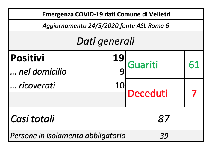 Si conferma il trend positivo dell’epidemia a Velletri, aumenta il numero dei guariti e di conseguenza le persone attualmente positive è di 19, un numero così basso non lo registravamo dal 30 marzo in piena emergenza, quando la curva era in salita vertiginosa. Nella tabella di riepilogo i dati aggregati.