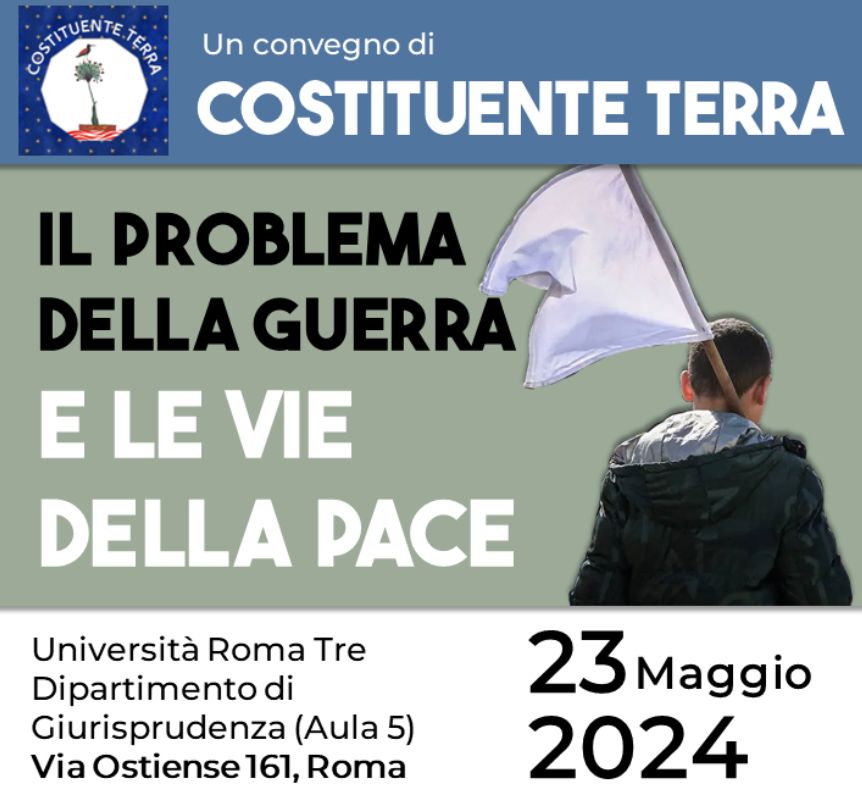 “Nella mattinata di giovedì 23 maggio 2024, si è svolto presso il Dipartimento di Giurisprudenza della Università Roma Tre, a Roma, il convegno dal titolo “Il problema della guerra e le vie della pace”, organizzato da Costituente Terra al fine di discutere della necessità di stipulare le garanzie della pace, oggi assolutamente mancanti. In questo periodo di grandi conflitti bellici e di diritti umani calpestati, appuntamenti di riflessione, come questo infatti, risultano importanti e autorevoli al fine tracciare – almeno idealmente – la strada per un mondo, una Europa, realmente senza guerra, dove a governare siano solo e soltanto i principi della pace, della inclusione, delle pari opportunità e della tutela dei diritti. In tal senso, “Iniziativa Comune” condivide in toto i valori fondanti di Costituente Terra e i contenuti delle sue soluzioni che puntano alla stipulazione di un nuovo patto globale di pacifica convivenza e sopravvivenza. E in particolare alla rifondazione della carta dell’Onu che definisca, nell’interesse di tutti, il disarmo totale degli Stati, la messa al bando delle armi, non solo di quelle nucleari ma di tutte le armi da sparo, e l’abolizione di tutti gli eserciti nazionali. Soluzioni e proposte, oggettivamente di difficile e immediata applicazione in un mondo d’oggi in cui dominano potere economico, materialismo sfrenato, personalismi politici e disuguaglianze sociali, ma che non ci fermano dal credere che si possano davvero cambiare le cose, magari continuando a costruire una rete internazionale e territoriale che faccia riflettere le coscienze e i popoli sulla necessità della pace e della uguaglianza, e sull’urgenza di un salto di civiltà. Perché solo così, l’umanità e il nostro pianeta potranno sopravvivere”.