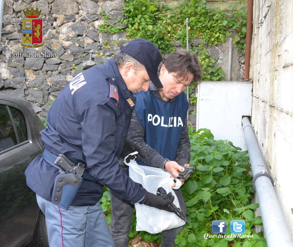 FRASCATI. LANCIATA UNA BUSTA DAL FINESTRINO: GLI AGENTI DELLA POLIZIA DI STATO VI TROVANO 2 REPLICHE DI PISTOLE