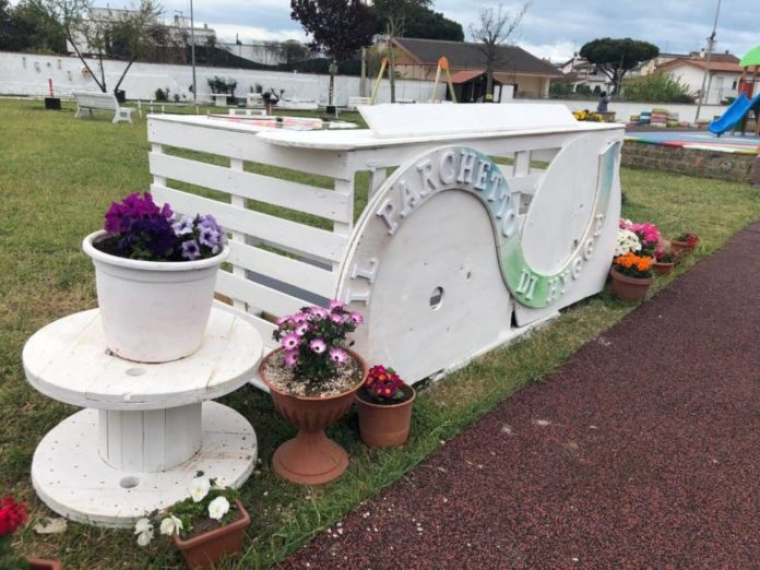 Questa mattina sono andato a vedere i lavori presso il parco di Via Reno: ho avuto modo incontrare Jlenia D’Andrea, la presidente dell’Associazione Centro Hygge insieme ad altri volontari, lì presenti per i lavori di manutenzione del parco. Mi hanno raccontato quanto fatto in questi mesi: dal taglio dell’erba, alla riparazione dei giochi, dalla sistemazione delle panchine, alla pittura dei muretti… Ho apprezzato molto l’attenzione che stanno dando all’ambiente, utilizzando legno riciclato per costruire sedie, tavole e panchine per l’area relax ed installando delle casette nido sugli alberi.