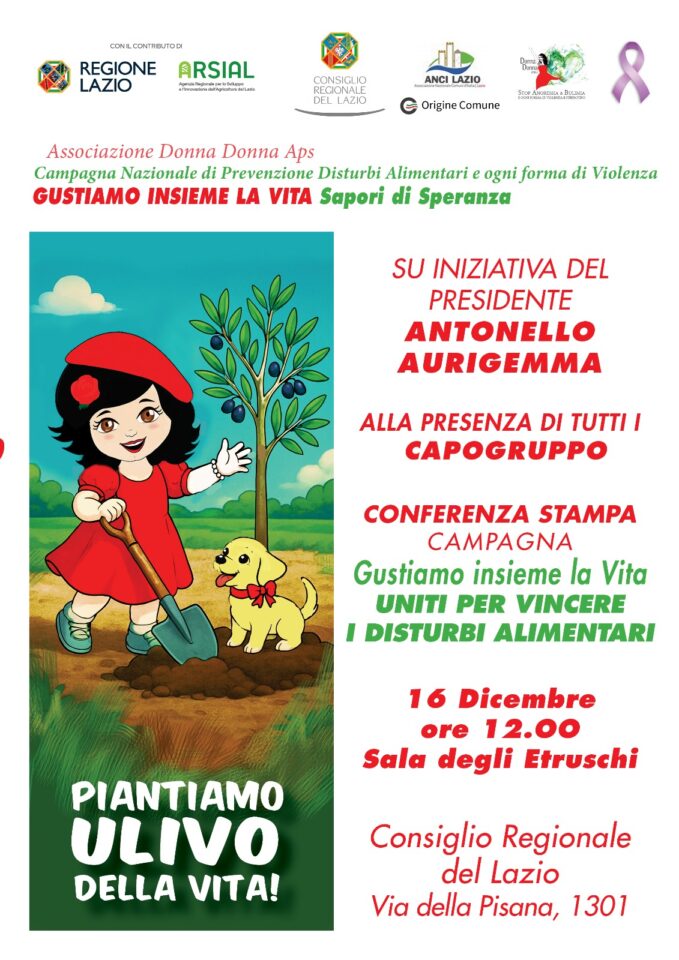 Martedì 16 dicembre alle ore 12 presso la sede del Consiglio regionale – Sala Etruschi a Via della Pisana 1301, si terrà la presentazione della nuova edizione della Campagna di sensibilizzazione, che si svilupperà nell’anno 2026. Tra le varie iniziative presenti all’interno della Campagna, anche il calendario 2026, con il contributo dei capigruppo di tutte le forze consiliari. Ciò dimostra l’impegno e la massima attenzione dell’intero Consiglio regionale di fronte a tematiche così delicate. Inoltre, “Gustiamo insieme la vita” prevede anche la piantumazione di un albero di ulivo, come segno di speranza e pace, e alcuni eventi insieme alle scolaresche. Desidero ringraziare il Consiglio regionale e tutti coloro che rendono possibile tale iniziativa, a partire da Anci Lazio”. Lo dichiara il Presidente del Consiglio regionale del Lazio, Antonello Aurigemma.