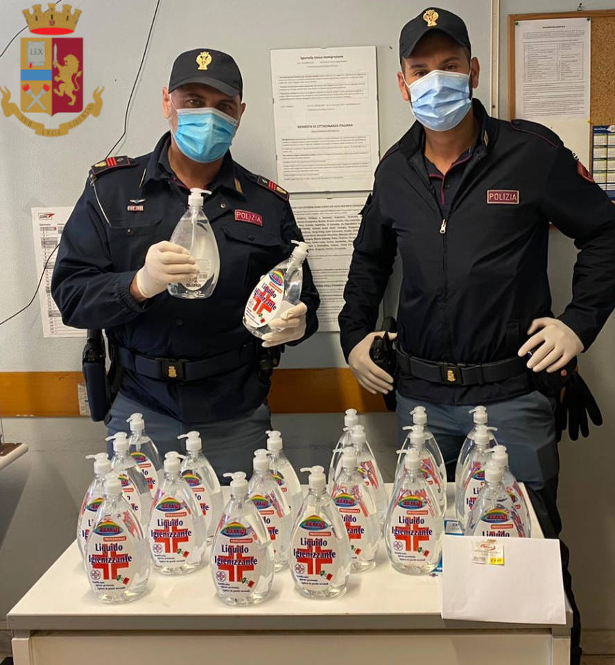Primavalle. Igienizzanti per superfici spacciati per igienizzanti mani. La Polizia di Stato denuncia due cinesi per frode e per aver adulterato, in modo pericoloso per la salute pubblica, prodotti destinati al commercio.