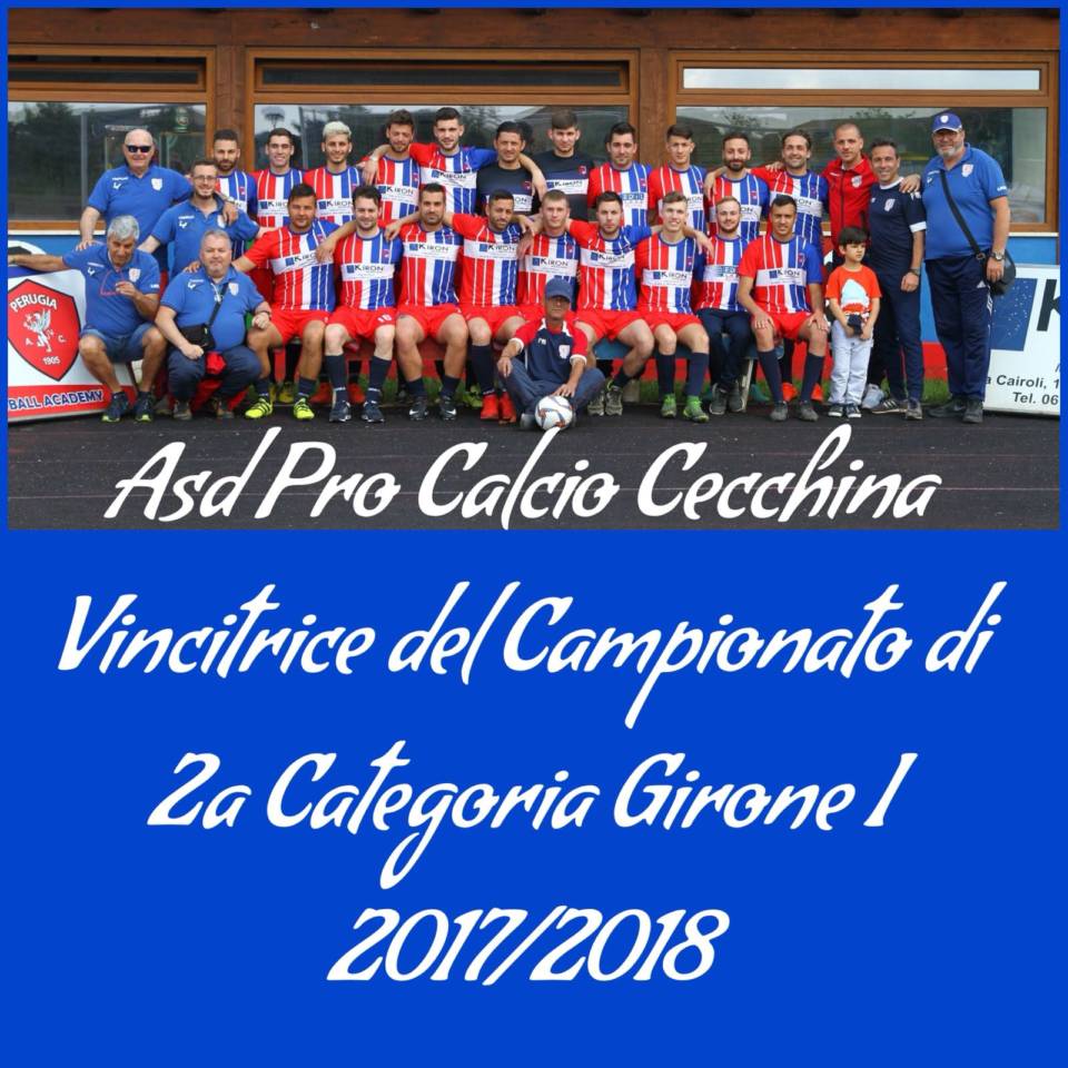 Il Pro Calcio Cecchina vincendo 4 – 0, in casa, ai danni del Virtus Ardea si è assicurato il primo posto finale nel Girone I del campionato di 2^ Categoria. La società sportiva, presieduta dal Presidente Roberto Checchi e dal Vice Presidente Giampiero Bussi, grazie a questo risultato disputerà il prossimo anno il campionato di 1^ Categoria. Presente alla partita il Consigliere Comunale Vincenzo Santoro comprensibilmente soddisfatto: «Voglio congratularmi con i calciatori, con lo staff tecnico e tutta la dirigenza per il grande obiettivo raggiunto, frutto del lavoro quotidiano sul campo e di un’attenta programmazione societaria iniziata anni fa». Alle parole del Consigliere Comunale Vincenzo Santoro hanno fatto seguito quelle del Sindaco Nicola Marini: «La promozione è un risultato importante che arricchisce il movimento calcistico cittadino. Il giusto premio all’impegno del Pro Calcio Cecchina e delle persone che ne fanno parte».