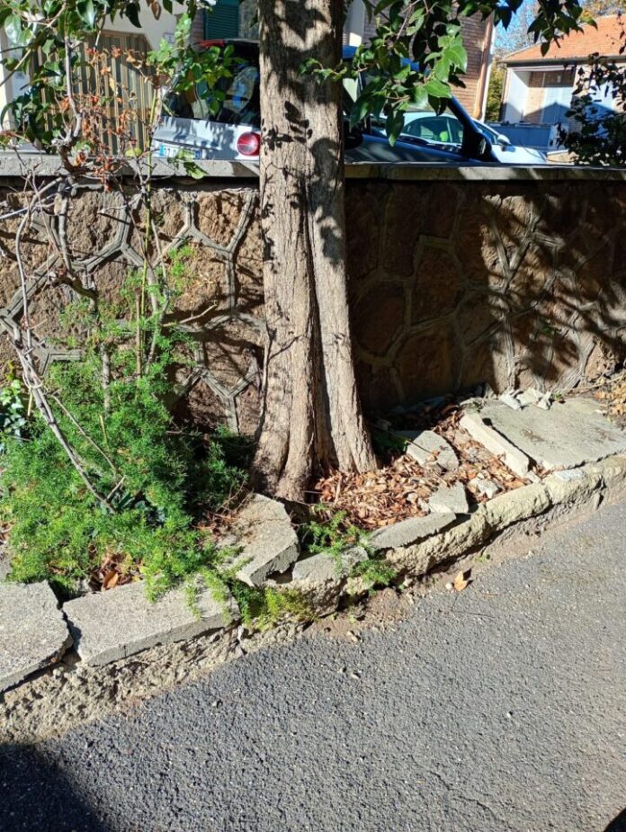 È stato inoltre osservato che un albero situato lungo la stessa via sta danneggiando il muretto e l’aiuola adiacenti, con un deterioramento progressivo che potrebbe aggravarsi senza un intervento mirato.