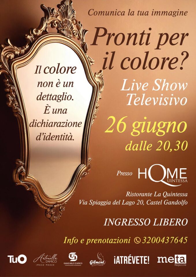 Dopo la grande partecipazione del primo incontro, l’appuntamento con il live show ripreso dalle telecamere di Meta Magazine è fissato per giovedì 26 giugno, a partire dalle ore 20:30. Il tema dominante questa volta sarà la cura della propria immagine nella bella stagione. Il colore non è un dettaglio, ma una dichiarazione di identità, con la quale trovarsi sempre più in sintonia con se stessi e con gli altri, sia che si vada in vacanza, sia che si resti in città.
