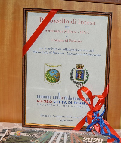La mattina di mercoledì Primo Luglio, presso l’Aeroporto Militare di Pratica di Mare, è stato siglato il protocollo d’intesa tra il Centro Informazioni Geotopografiche Aeronautiche (CIGA) dell’Aeronautica Militare e il Comune di Pomezia, contenente iniziative culturali a favore del Museo Città di Pomezia – Laboratorio del Novecento situato nel Centro Storico della Città, in Piazza Indipendenza. La collaborazione, frutto di un intenso lavoro congiunto, nasce dall’esigenza prioritaria di regolare le attività di acquisizione, esposizione e conservazione nel Museo di materiale fotografico storico aeronautico che documenta la trasformazione territoriale della Città nelle sue diverse fasi evolutive e, allo stesso tempo, di promuovere iniziative condivise in ambito culturale, museale e storico. Tra le principali attività di collaborazione promosse dal protocollo: