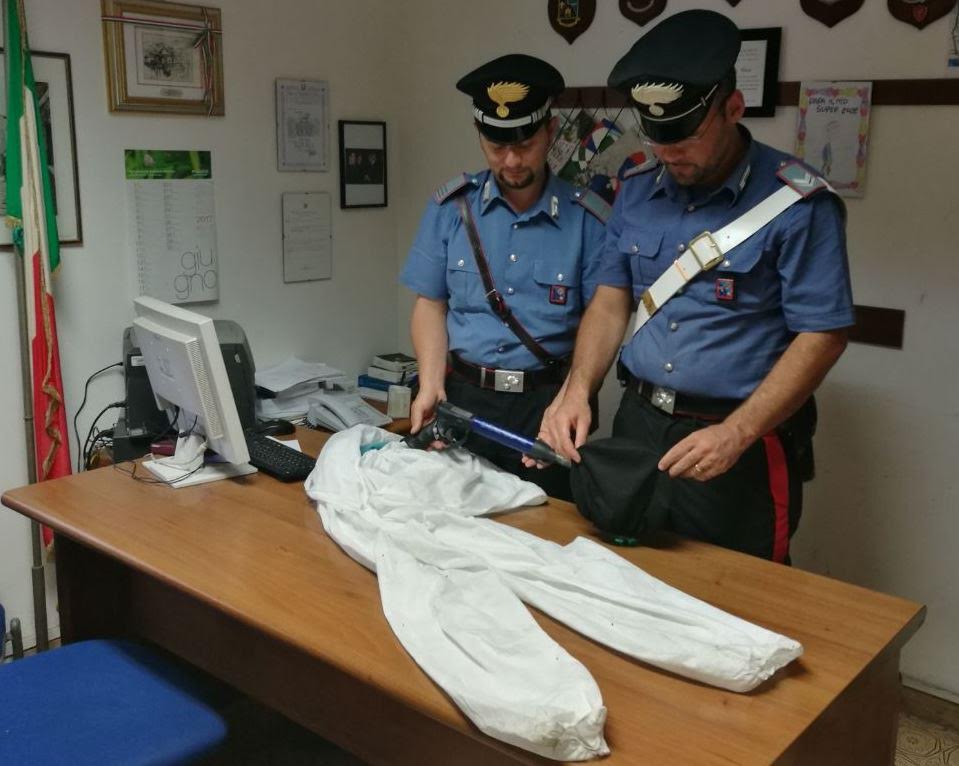 Fermato l’uomo, i Carabinieri hanno eseguito un’accurata ispezione nell’area verde, rinvenendo la tuta da imbianchino, un passamontagna e un fucile da pesca subacquea, ossia il kit da rapinatore utilizzato dal soggetto per compiere entrambi i reati a tempo di record.