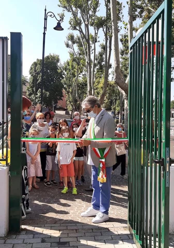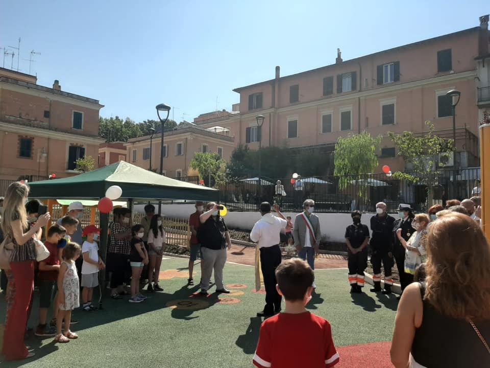 Il sindaco di Grottaferrata, Luciano Andreotti alla presenza di assessori e consiglieri comunali, ha inaugurato stamattina il parco di largo Gorizia detto “Praticello”. L’evento ha avuto luogo nel giorno in cui l’ordinanza sindacale dello scorso 14 luglio ha disposto la riapertura di tutti i parchi e aree verdi pubblici sull’intero territorio comunale grottaferratese. Il parco di Largo Gorizia, in particolare, è stato oggetto di importanti interventi di riqualificazione. Al Praticello, infatti, sono stati realizzati lavori di completa risistemazione. E’ stata ricreata una specifica area giochi per i bambini con l’inserimento di attrezzature utilizzabili anche da bimbi diversamente abili con apposita pavimentazione anti-trauma, particolarmente apprezzata dai piccoli presenti ai quali sono state donate dall’Amministrazione delle speciali mascherine colorate. All’interno del parco è stata realizzata anche una pista ciclabile per i più piccoli con adeguata segnaletica orizzontale, oltre all’installazione di panchine, illuminazione e nuove piante. Il tutto per un importo che si aggira attorno ai 200mila euro. L’opera pubblica, in particolar modo la nuova area giochi, è stata benedetta dal parroco di San Pio X, don James Edassery.