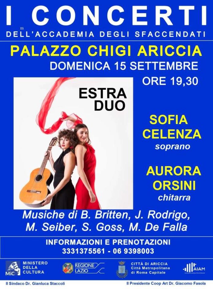 Domenica 15 settembre, alle ore 19:30, nella Sala Maestra di Palazzo Chigi ad Ariccia riprendono “I Concerti dell’Accademia degli Sfaccendati” con il primo di 10 appuntamenti del ciclo autunnale che si svolgerà, sempre nella Sala Maestra di Palazzo Chigi, dal 15 settembre al 14 dicembre 2024.