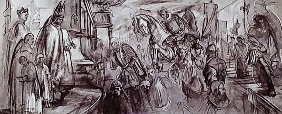 Ad oggi sono infatti presenti in aula le prime bozze delle tele: 4 ai lati oltre a quella centrale dietro il tavolo della presidenza.