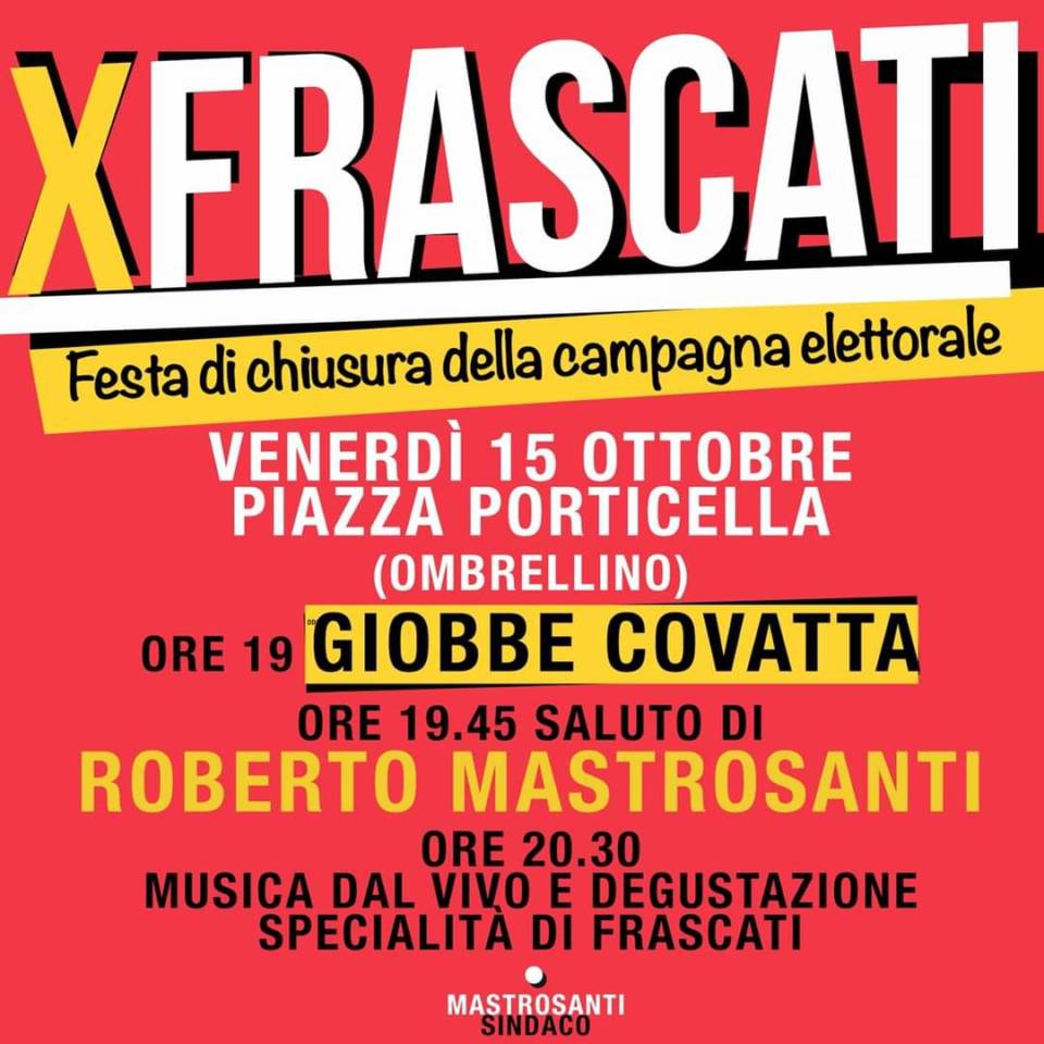 “. Lo dichiara l’avvocato Mastrosanti, candidato sindaco a Frascati che si misura con Francesca Sbardella per essere riconfermato sindaco domenica 17 e lunedì 18 ottobre.