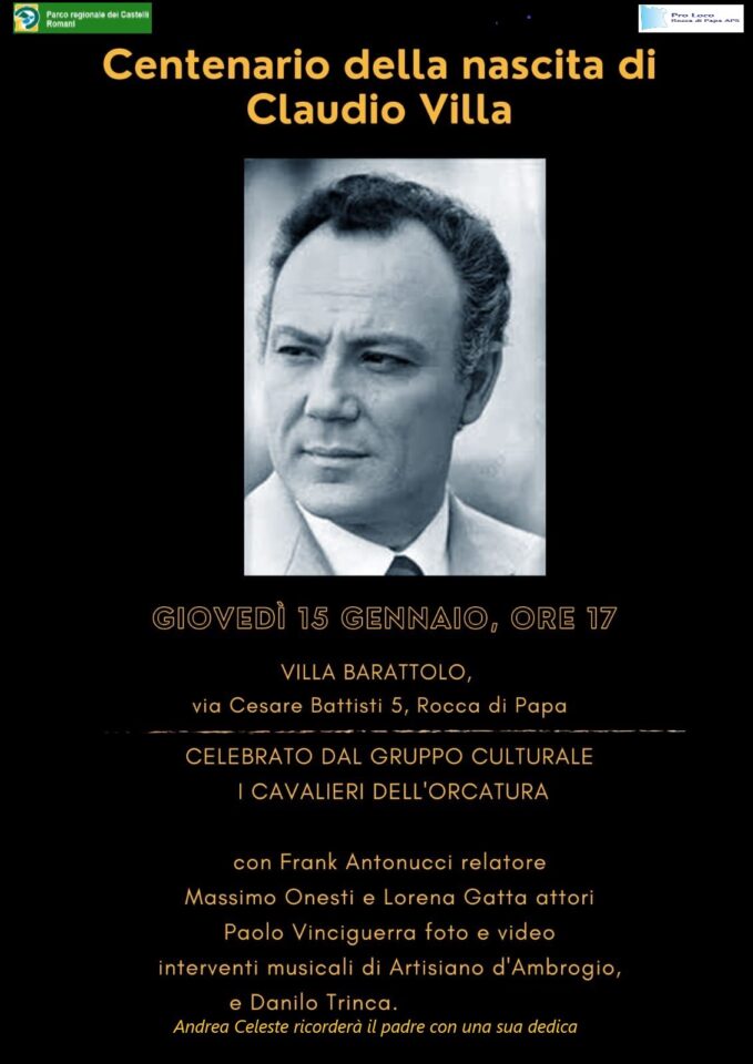 L’evento si terrà giovedì 15 gennaio alle ore 17, presso Villa Barattolo, in via Cesare Battisti 5, a Rocca di Papa, e sarà promosso dal Gruppo Culturale “I Cavalieri dell’Orcatura”, con il patrocinio del Parco Regionale dei Castelli Romani e della Pro Loco di Rocca di Papa APS.