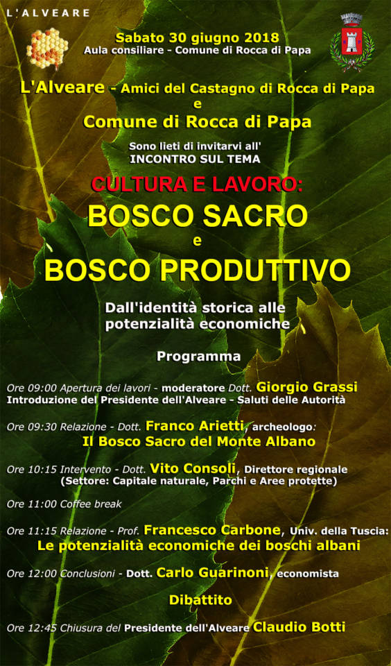 L’incontro di sabato 30 giugno (Comune di Rocca di Papa – aula consiliare) nasce dalla necessità di coniugare l’enorme potenzialità di tre ambiti concomitanti: il grande patrimonio boschivo di Rocca di Papa, la straordinaria ricchezza storico – archeologica del Monte Albano, del Bosco Sacro, via Sacra, di Alba e Alba Longa, ed infine, il valore paesaggistico e panoramico, in particolare della vetta di Monte Cavo.