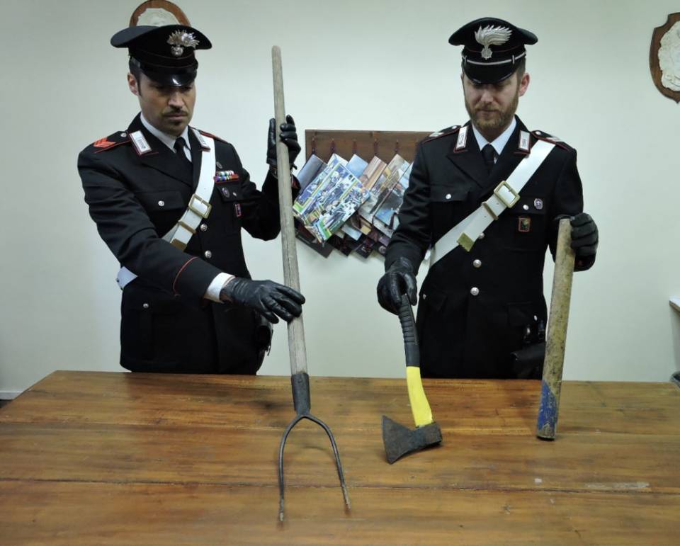 ROCCA PRIORA – UNA FIGLIA CONTESA FA SCOPPIARE UNA VIOLENTA RISSA A COLPI DI ACCETTA, FORCONE E BASTONE. CARABINIERI ARRESTANO 3 PERSONE.
