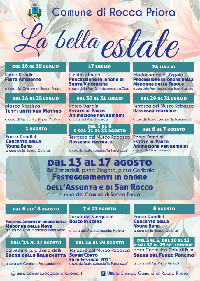 La bella estate, il cartellone degli eventi estivi presentato dal Comune di Rocca Priora