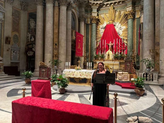 L’arte torna a fondersi con la spiritualità al Santuario di San Salvatore in Lauro di Roma. Nel corso delle celebrazioni per la Festa di San Pio da Pietrelcina, il mezzosoprano Alessandra Ragusa si è esibita all’interno del Santuario con due brani emozionanti e toccanti: Figlio mio e il Magnificat di Monsignor Frisina. L’esibizione è stata possibile grazie alla maestria e all’organizzazione di Black Service di Egidio Virgili, che negli anni ha collaborato con importantissimi nomi del panorama musicale come Lucio Dalla, Antonello Venditti, Gianluca Grignani, Enrico Ruggeri e molti altri.
