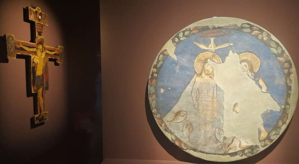 Lo spettatore odierno, dunque, intraprende un viaggio à rebours fra oltre 160 opere, tra documenti, reliquie di martiri, mosaici, affreschi e tessuti (tra cui lo strabiliante piviale, in filo d’oro, di Papa Bonifacio VIII), da raccolte, prestigiosi musei e collezioni pubbliche, cogliendo l’occasione per avere una visione d’insieme inedita e conoscere aspetti poco noti del patrimonio di un’Urbe al centro del mondo.