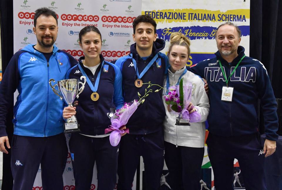 E’ un inizio d’anno scintillante per il Frascati Scherma. Le feste e i cenoni di famiglia non hanno distratto gli atleti che si sono ritrovati in pedana già nel week-end dell’Epifania. E’ il caso di diversi ragazzi della categoria Under 20 che avevano in programma un importante appuntamento di Coppa del Mondo. A Udine c’erano di scena i fiorettisti e il Frascati Scherma ha potuto applaudire una prestazione praticamente perfetta di Serena Rossini e Arianna Pappone che hanno sfiorato una finale “in famiglia”: la prima, comunque, è riuscita ad arrivare fino in fondo sbaragliando la concorrenza, mentre la seconda ha visto interrompere la sua corsa solamente in semifinale e si è dovuta “accontentare” del terzo posto. Per la Rossini è l’ennesima strepitosa conferma in questo inizio di stagione: dopo il successo nella prova Giovani di Ravenna e il 14esimo posto ai mondiali militari di Nancy, l’atleta classe 1999 arrivata quest’anno al Frascati Scherma e allenata dal maestro Guido De Bartolomeo ha ottenuto una vittoria di assoluto prestigio che ne testimonia le importanti qualità tecniche e caratteriali. Dopo aver superato la russa Semenova ai quarti di finale con il netto punteggio di 15-8, la Rossini ha stravinto anche la semifinale piegando l’atleta di Singapore Berthier per 15-6. Senza storia anche l’atto conclusivo in cui la fiorettista si è sbarazzata della russa Petrova con il medesimo punteggio della semifinale, “vendicando” così sportivamente la sua compagna di società Pappone che aveva perso in precedenza con la Petrova per 15-10. Alla stessa gara hanno partecipato anche Lucrezia Grimaldi (che si è fermata al 32esimo posto finale) e Serena Puglia (76esima). Nella medesima prova al maschile non sono arrivati “squilli” né da Federico Colamarco (44esimo), né da Lorenz Lauria (84esimo). Tempo di Coppa del Mondo Under 20 anche per gli sciabolatori che erano di scena a Budapest: in terra magiara era presente Vally Giovannelli che si è arenata al 24esimo posto.