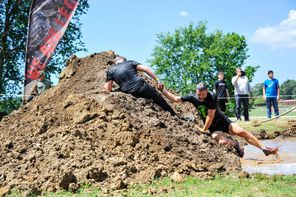 Inutile provare a prendere la rincorsa per salire su dei muri verticali di 2,5 metri. Si è coperti di fango e non si avrà una presa sufficiente. Meglio farsi aiutare dagli altri.