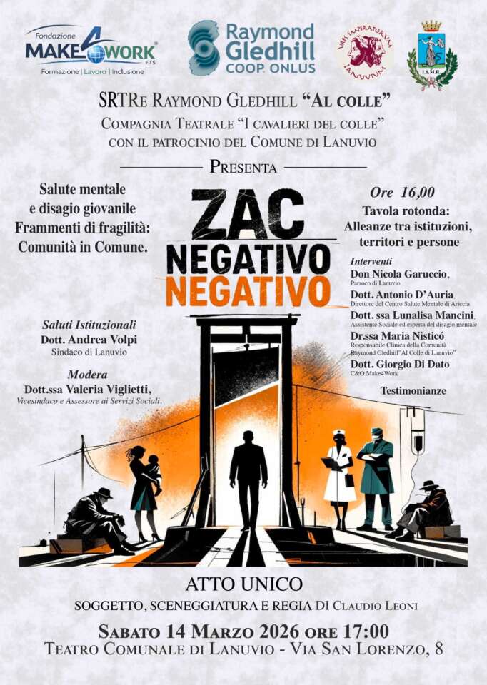 Sabato 14 marzo, una tavola rotonda e lo spettacolo teatrale “Zac Negativo Negativo” per accendere i riflettori sulle fragilità giovanili e la forza della riabilitazione.