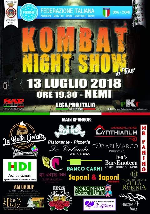 Nemi ospita Il Kombat Night Show giunto alla sua 13° edizione. Un evento ideato da Alessandro Topa per la promozione dello sport totalmente gratuito al pubblico.