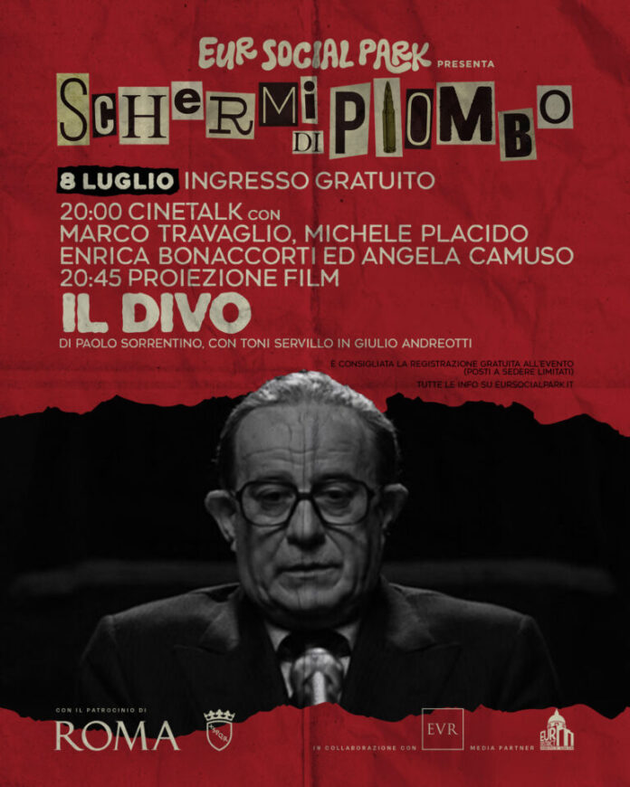 Un percorso a spasso nella storia, per non dimenticare la memoria di un paese, con la speranza che il passato possa illuminare il futuro, soprattutto le menti delle giovani generazioni. Questa la mission della rassegna “Schermi di Piombo”, ideata da Leonardo Scuderi ed ospitata presso lo spazio Eur Social Park, che prosegue, di settimana in settimana, le sue proiezioni di pellicole di successo precedute da un talk con protagonisti ed esperti di quei decenni cruciali per l’Italia degli anni ’70 e ’80. Una platea sempre gremita che ogni martedì registra proprio la presenza di tantissimi giovani, studenti e curiosi, interessati alle tematiche esposte nel corso dei vari dibattiti ed approfondimenti. Ed è grande l’attesa per la proiezione di martedì 8 luglio, che vedrà sullo schermo il film di Paolo Sorrentino “Il Divo”, dedicato alla vita di Giulio Andreotti, Una figura chiave della politica italiana per decenni che segna l’inizio del processo di Palermo per collusioni mafiose. A discutere del politico e del suo impatto sulla nazione, nel salotto condotto dalla giornalista d’inchiesta Angela Camuso, ci saranno, tra gli altri: Michele Placido, Enrica Bonaccorti e Marco Travaglio. La kermesse, che si concluderà il 22 luglio e che è vanta il patrocinio del Comune di Roma, la collaborazione di Eur Spa insieme al media partner Eur District Municipio IX, ha deciso di lanciare una sfida per utilizzare il grande schermo non solo come motivo di intrattenimento, ma anche come potente mezzo utile a produrre riflessioni e stimolare le coscienze. Ingresso gratuito dalle 19:00 alle 0:00, viale di Val Fiorita (c/o Eur/Magliana).Per info e prenotazioni consultare www.eursocialpark. it