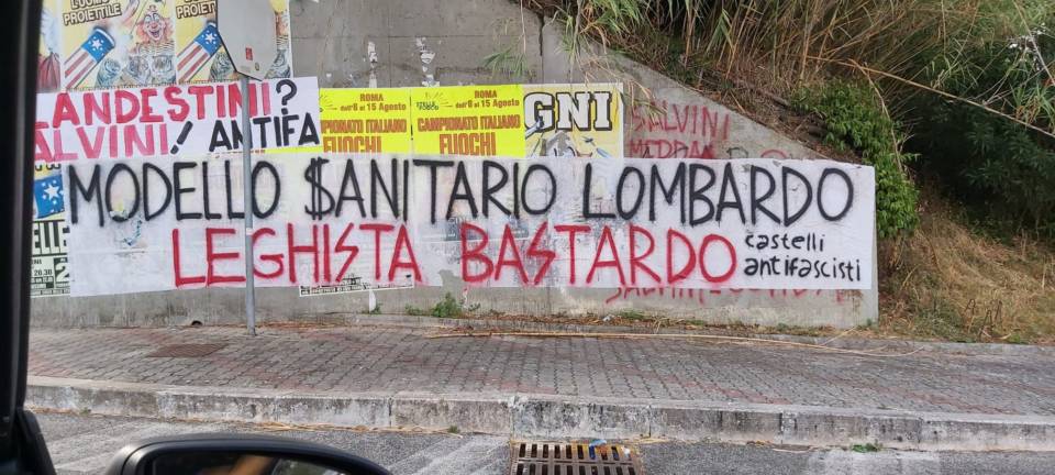 Scritte e striscioni denigratori contro l’arrivo di Salvini ad Albano