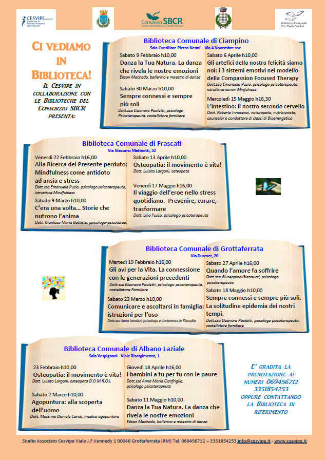 L’appuntamento fa parte di un Ciclo di Seminari su tematiche inerenti il Nostro Benessere organizzato dal CESVIPE (Centro Integrato per lo Sviluppo della Persona) in collaborazione con alcune biblioteche del CONSORZIO SBCR.