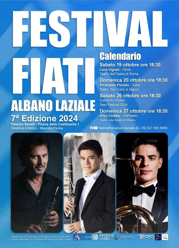 La Sala Nobile è pronta ad accogliere, dal 19 al 27 ottobre 2024, l’attesissima VII edizione del Festival Fiati Albano Laziale. La rassegna concertistica avrà una formula rinnovata che prevede quattro appuntamenti raccolti in due weekend con artisti di fama internazionale.